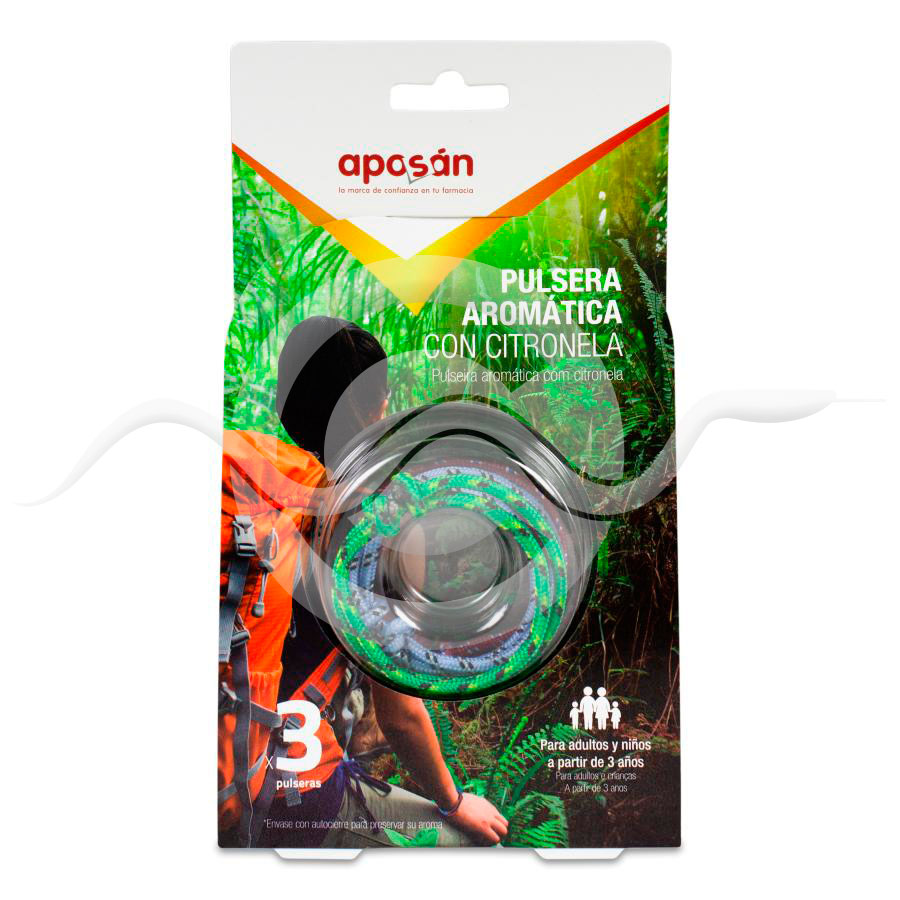 Aposán Pulsera Aromática de Citronela, está formulada con productos naturales y ayuda a proteger a toda la familia. Puede utilizarse desde los 3 años y es resistente al agua, lo que la hace perfecta para llevarla en actividades al aire libre.