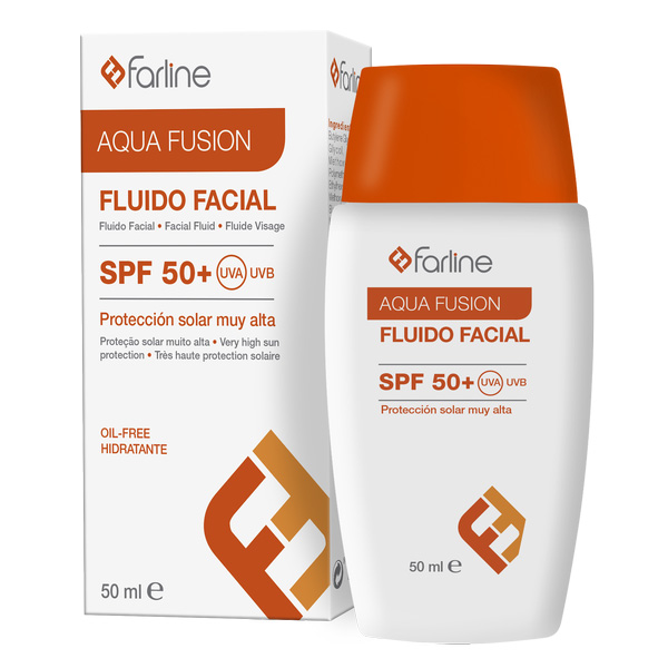Fluido facial con textura de base acuosa oil-free, y protección solar muy alta 50+. Hidrata en profundidad gracias a su contenido en ácido hialurónico de bajo y medio peso molecular. Testado bajo control dermatológico. 50 ml