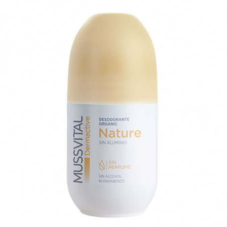 Mussvital Dermactive Deo Nature roll-on de 75 ml es un desodorante antitranspirante desarrollado para respetar la piel. Su fórmula con aloe vera y extracto de boswellia contribuye a minimizar las reacciones de la epidermis como son la inflamación e irritación.